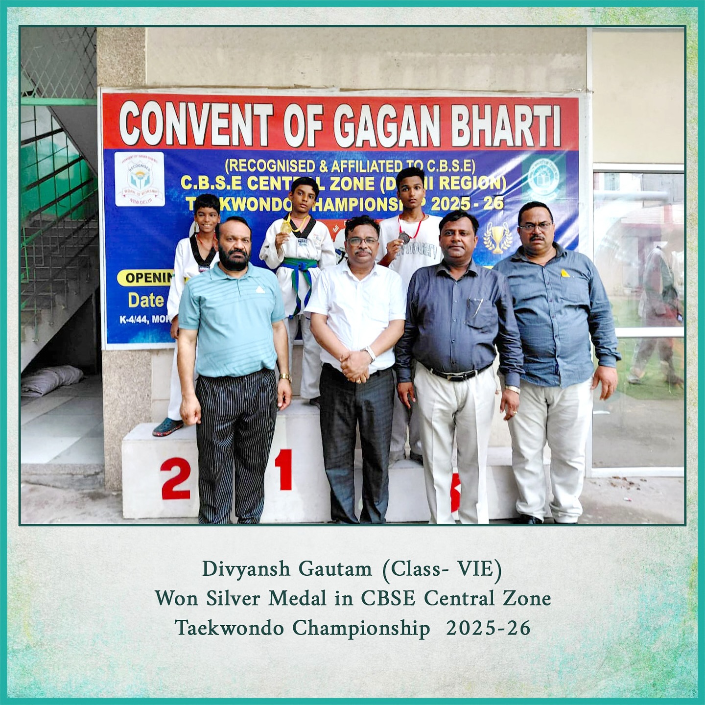 We are delighted to celebrate the remarkable success of Shreasth Yadav, Class X, and Divyansh Gautam, Class VI, who clinched the Gold Medal at the CBSE Central Zone Taekwondo Championships 2025-26.