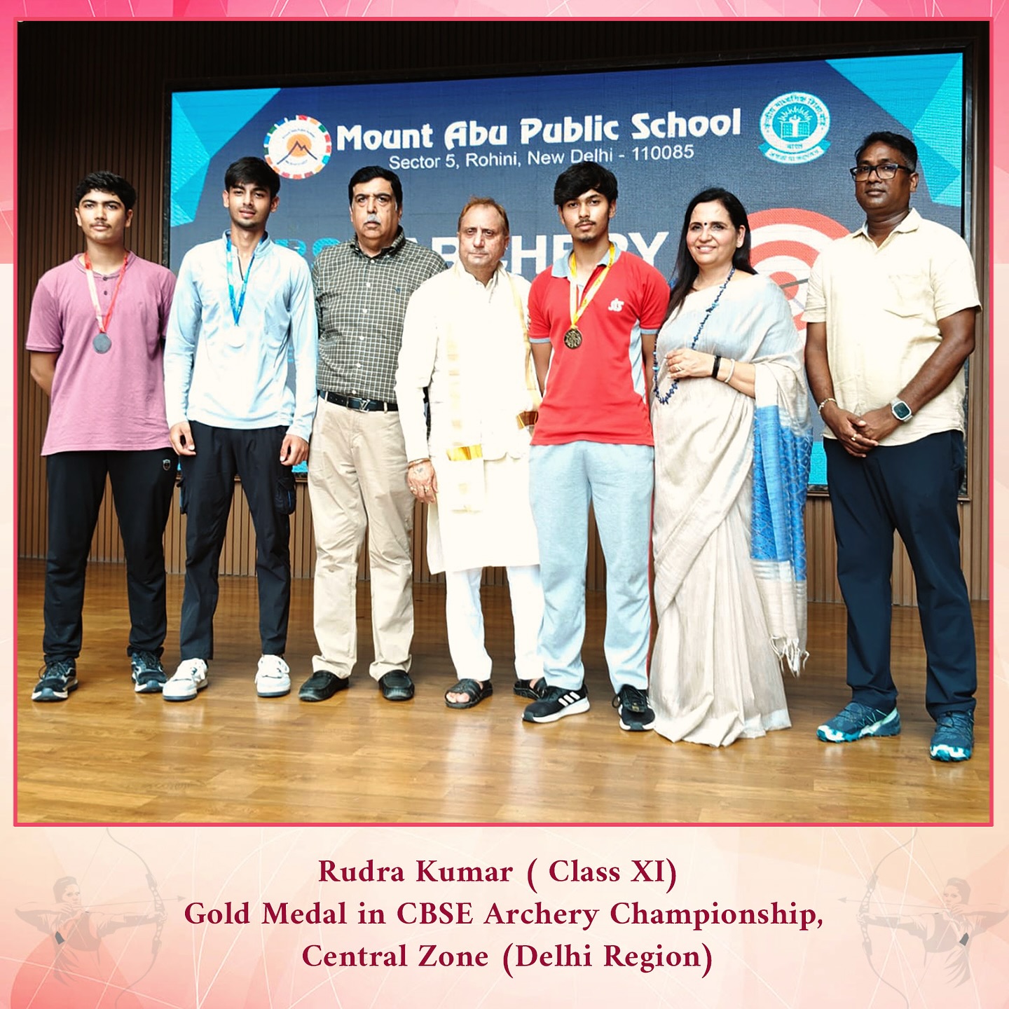 Heartiest congratulations to Rudra Kumar, class XI for clinching the Gold Medal at the CBSE Central Zone Archery Championship.